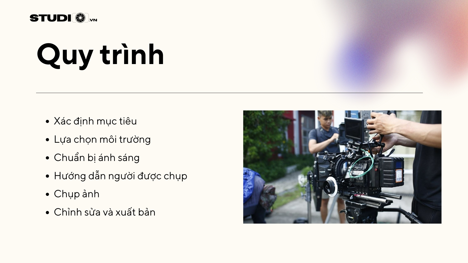Quy trình chụp ảnh chân dung nam bao gồm các bước sau: