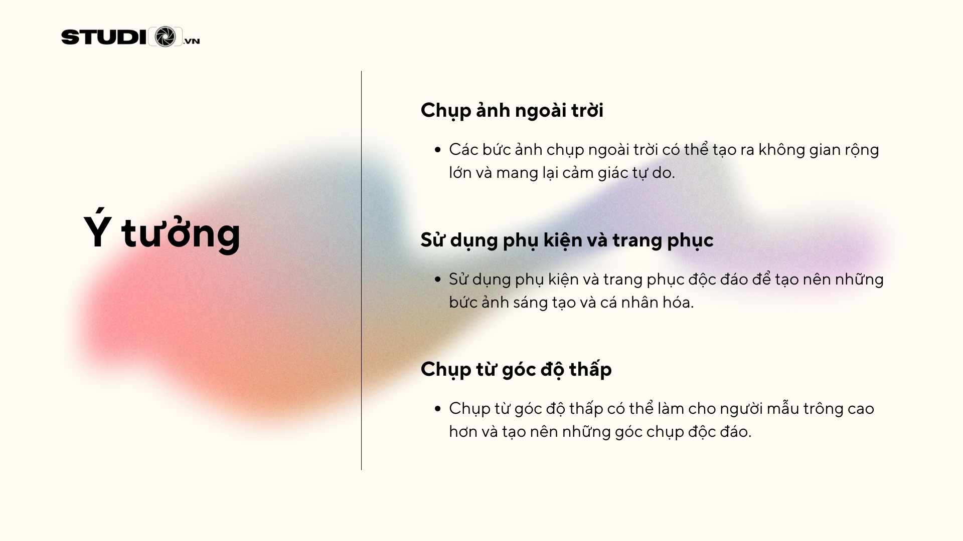 - Chụp ảnh ngoài trời: Sử dụng thiên nhiên và cảnh quan để làm nổi bật người mẫu. Các bức ảnh chụp ngoài trời có thể tạo ra không gian rộng lớn và mang lại cảm giác tự do.