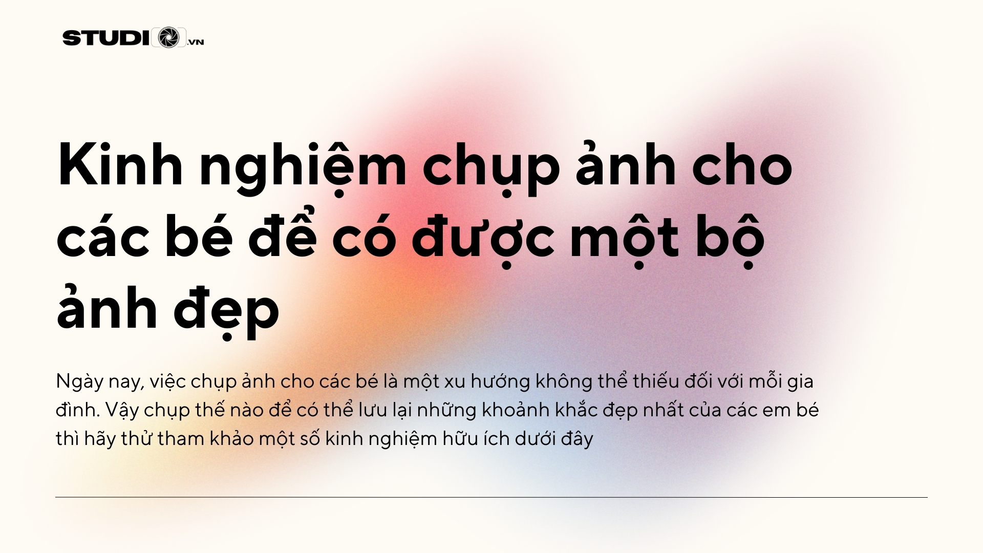 Ngày nay, việc chụp ảnh cho các bé là một xu hướng không thể thiếu đối với mỗi gia đình. Vậy chụp thế nào để có thể lưu lại những khoảnh khắc đẹp nhất của các em bé thì hãy thử tham khảo một số kinh nghiệm hữu ích dưới đây: