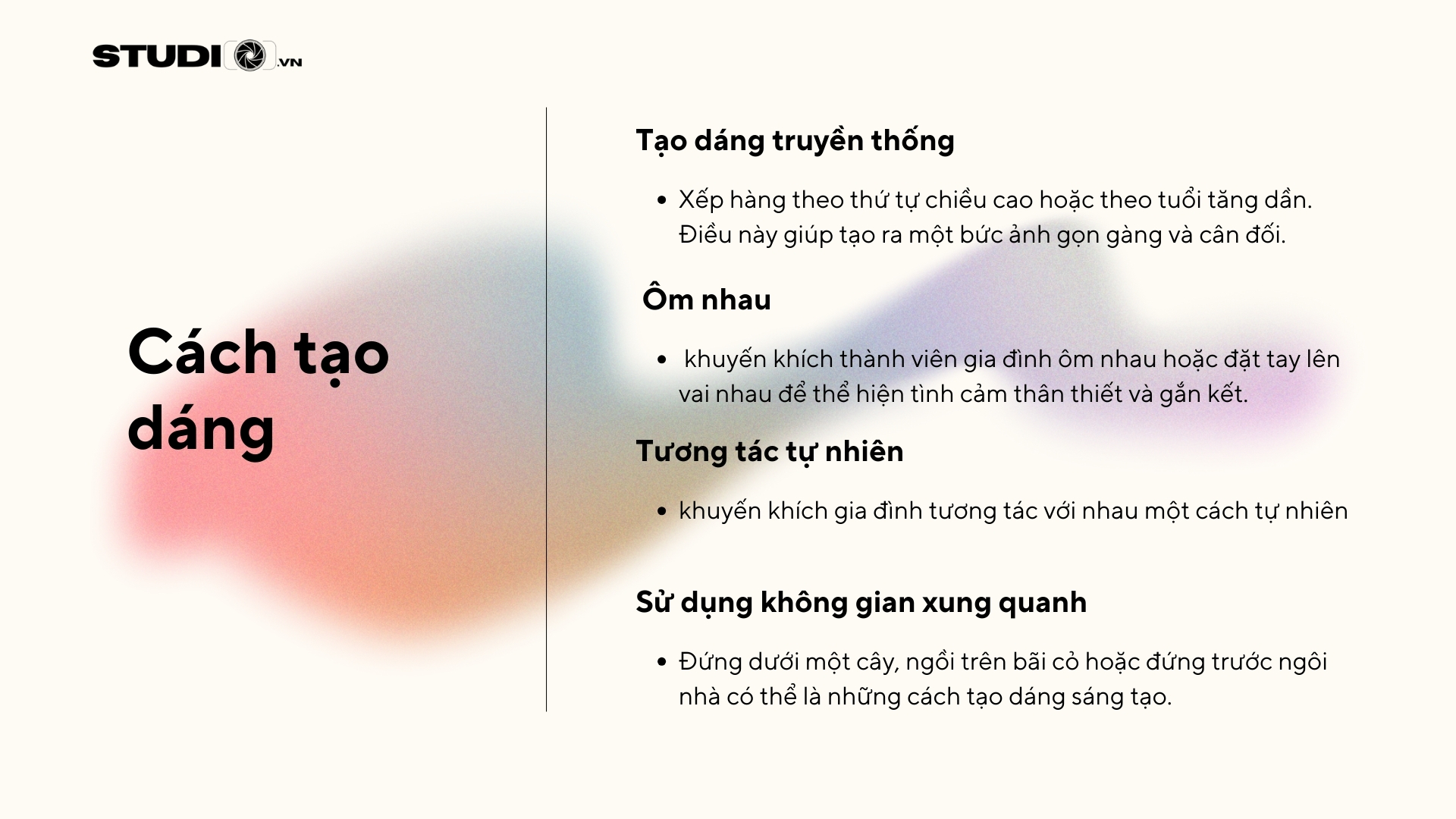 Khi chụp ảnh gia đình ngày Tết, có một số cách tạo dáng sau đây mà bạn có thể tham khảo: