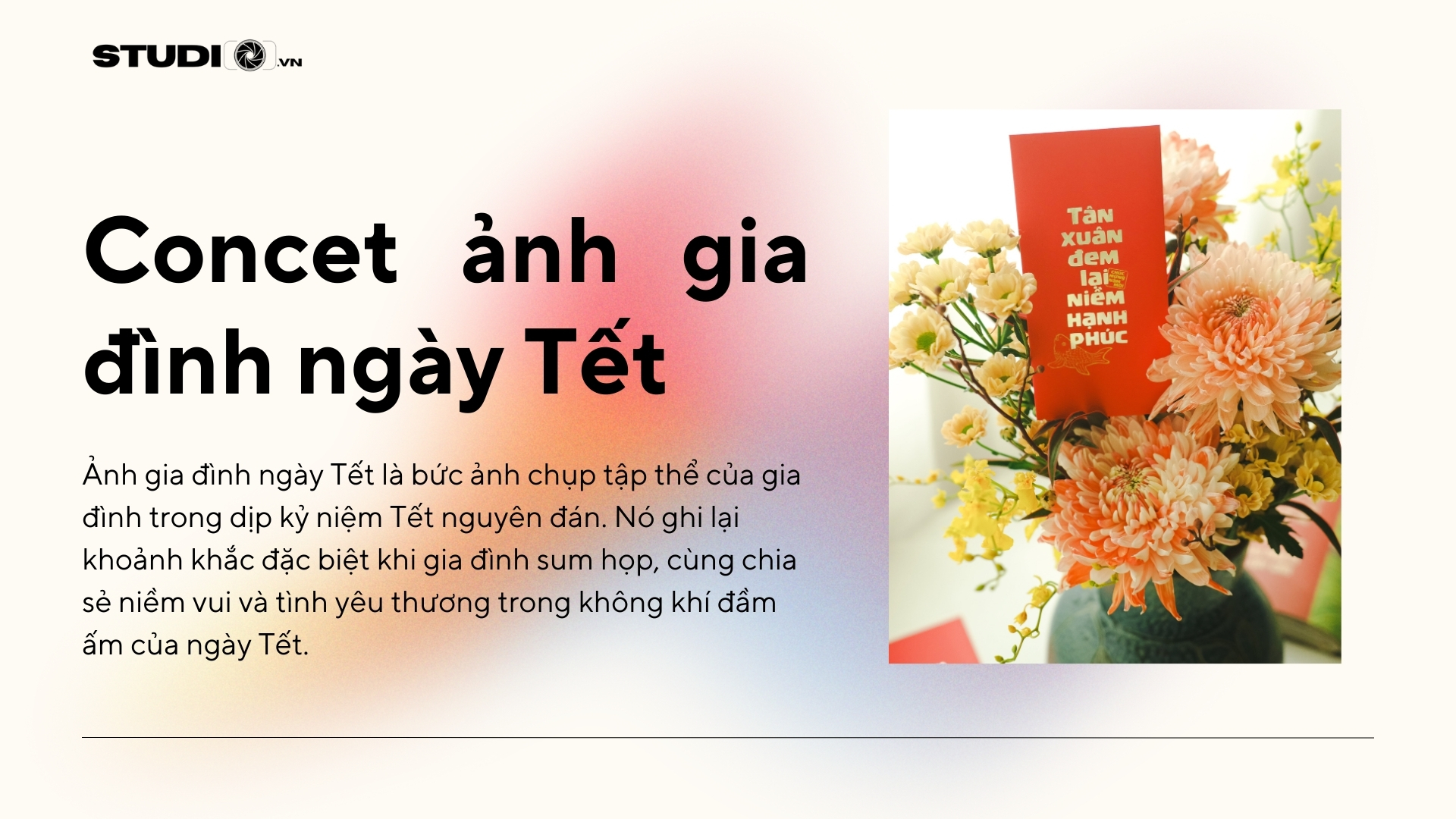 – Tạo không gian vui tươi: Sử dụng phụ kiện Tết và trang trí để tạo không gian vui tươi và phù hợp với bối cảnh ngày Tết. Các phụ kiện như hoa đào, cây quất, bánh chưng và đèn lồng có thể được sử dụng để làm nổi bật không gian và tạo thêm cảm giác lễ hội trong bức ảnh.