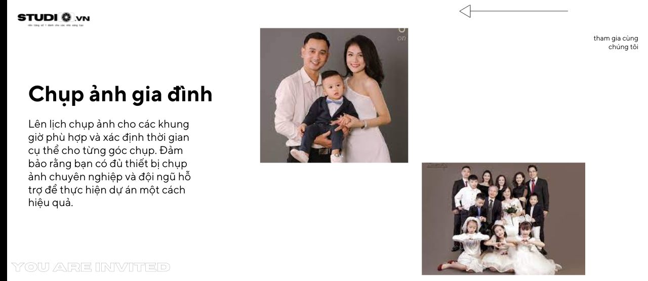 Sau khi thống nhất về phong cách và không gian chụp ảnh, tiến hành chuẩn bị và lên kế hoạch chi tiết. Chuẩn bị quần áo và phụ kiện phù hợp với phong cách chụp ảnh và cá nhân hóa cho từng thành viên trong gia đình. Lên lịch chụp ảnh cho các khung giờ phù hợp và xác định thời gian cụ thể cho từng góc chụp. Đảm bảo rằng bạn có đủ thiết bị chụp ảnh chuyên nghiệp và đội ngũ hỗ trợ để thực hiện dự án một cách hiệu quả.