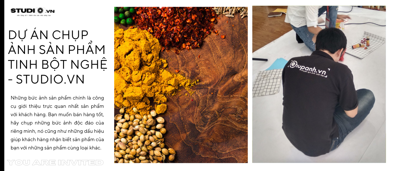 - Bạn có thể chụp ảnh tinh bột nghệ ở nhà hoặc trong studio, miễn là có được nền tối giản, ánh sáng tốt và không gian sạch sẽ.