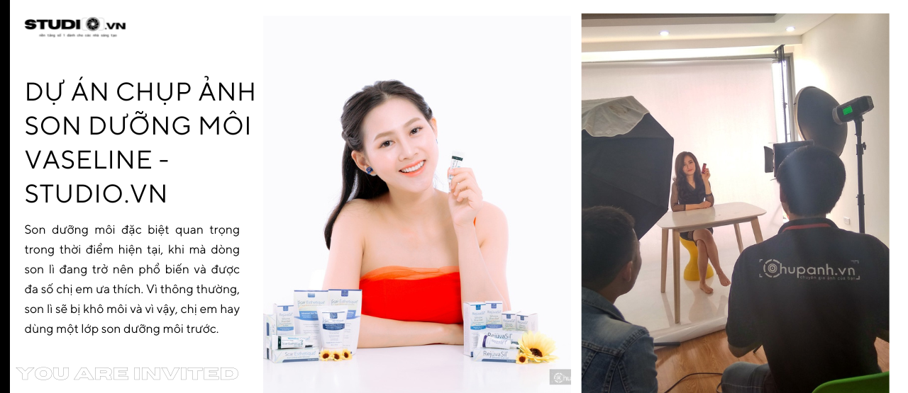 Sau khi chuẩn bị và lên kế hoạch hoàn chỉnh, bắt đầu quá trình chụp ảnh Son dưỡng môi Vaseline theo yêu cầu. Sử dụng kỹ thuật chụp ảnh chuyên nghiệp để ghi lại các góc chụp thể hiện đúng tính năng và thiết kế của son dưỡng môi. Tạo ra các bức ảnh gần cận để khách hàng có thể nhìn thấy chi tiết và chất lượng của sản phẩm. Sử dụng ánh sáng và màu sắc sao cho phù hợp với phong cách và không gian đã được xác định trước đó.